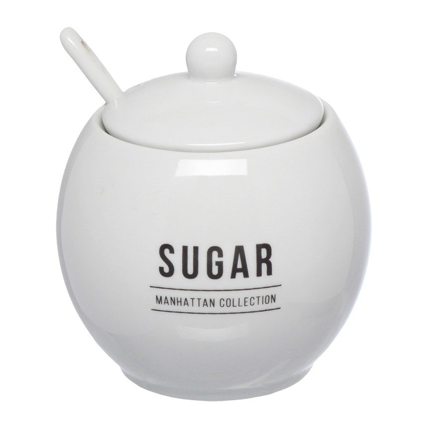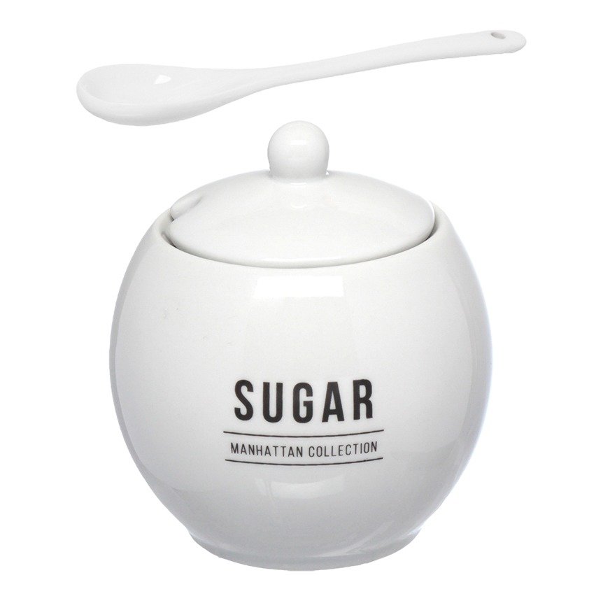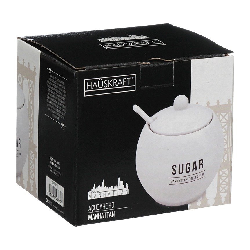 Açucareiro Com Colher Porcelana Manhattan 350ml Cor Branco Hauskraft