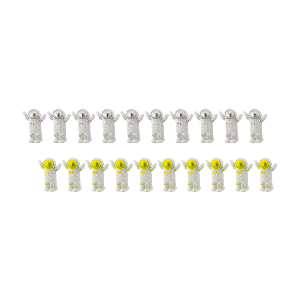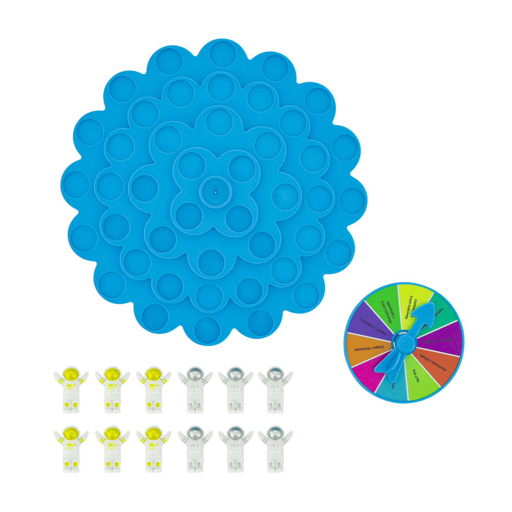 Especificações técnicas Idade A partir de 5 anos Contém na Embalagem 1 suporte, 1 haste, 1 base bamba, 48 astronautas (24 prateados e 24 dourados),1 dado, 1 roleta de desafios e 1 saco plástico Composição/material(is) Plástico Selo de Segurança do Inmetro 000 135 / 2023
