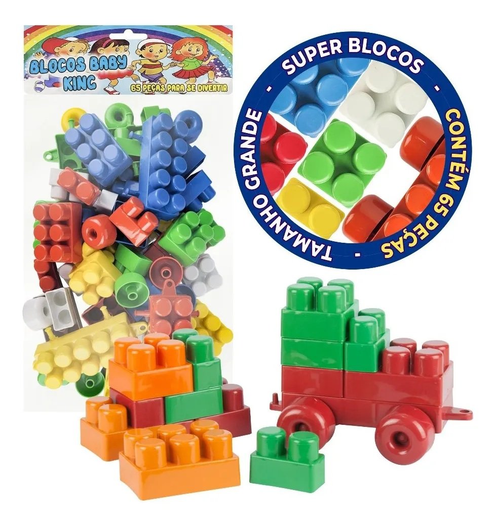 Os Blocos Baby King 65 Peças são a porta de entrada para um mundo de criatividade e aprendizado para suas crianças! Com cores vibrantes e material plástico de alta qualidade, este conjunto não só estimula a coordenação motora, mas também promove a criatividade e a imaginação das crianças.