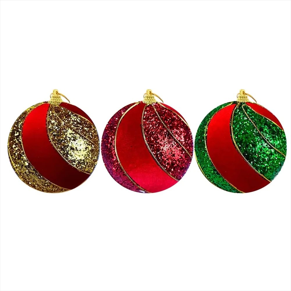 Enfeite em formato esférico com 8 cm de diâmetro, em cores sortidas com acabamentos variados (liso, fosco, metálico). Ideal para pendurar na árvore de Natal ou incorporar em arranjos festivos. Material leve, fácil de decorar e adicionar ao ambiente natalino.