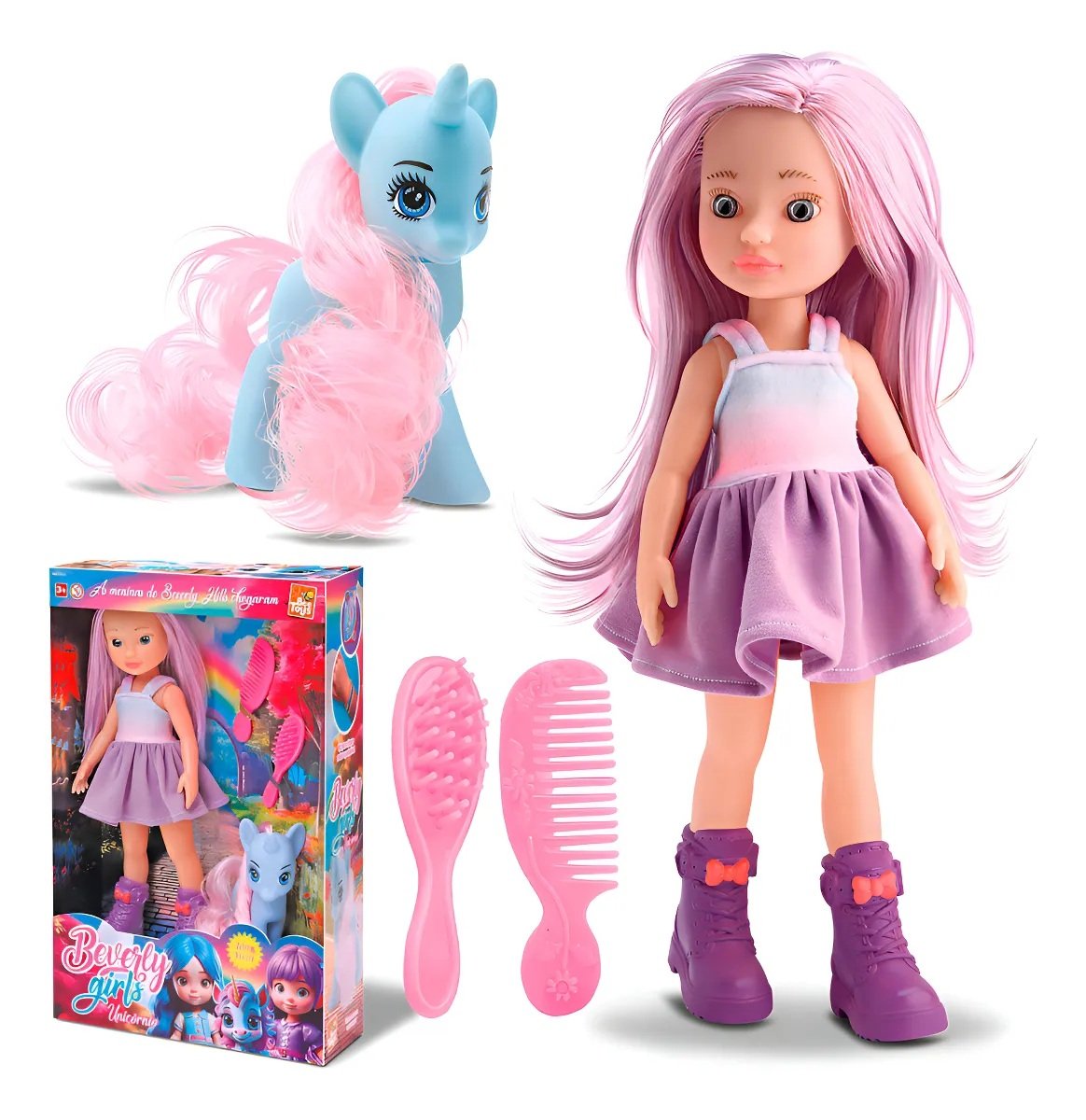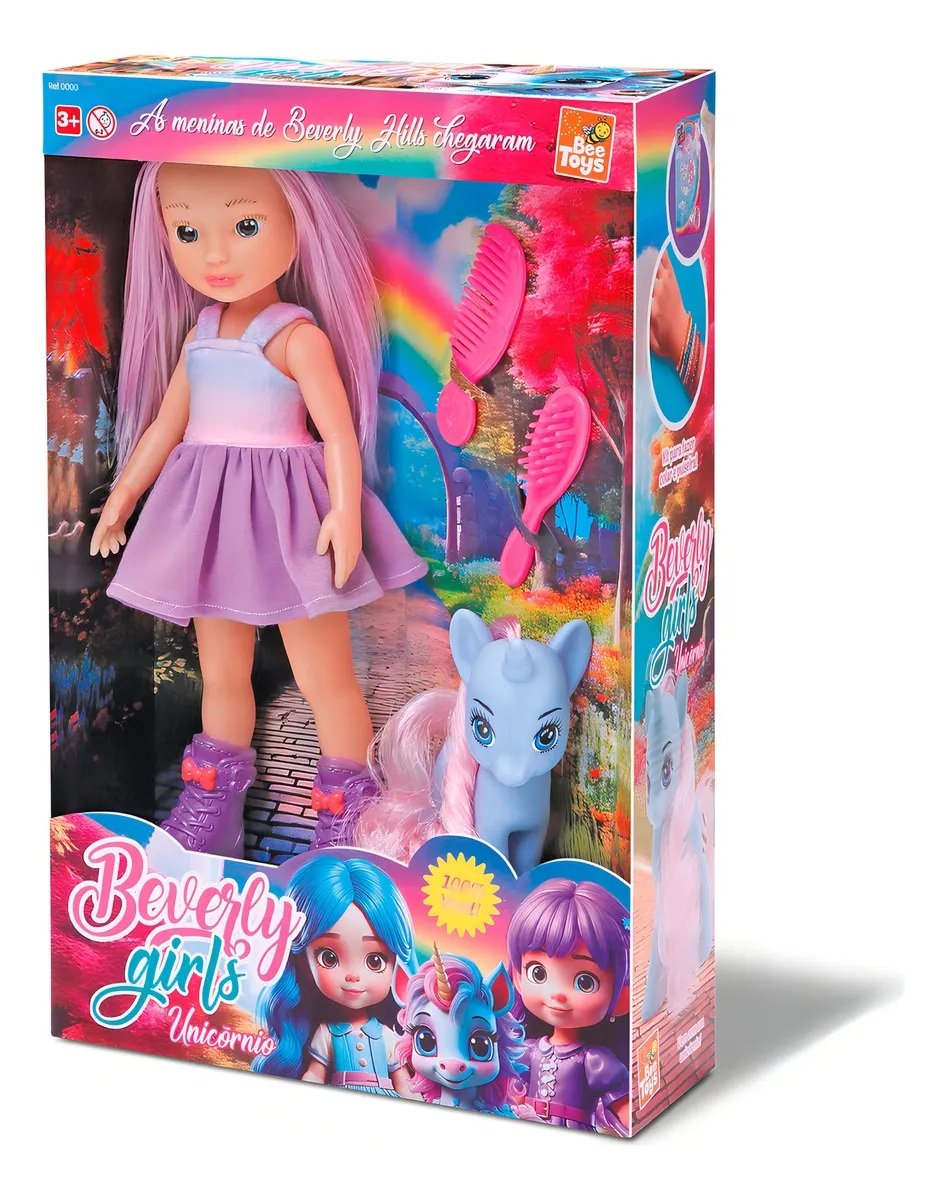 Informações Adicionais Conteúdo da Embalagem: 01 Boneca Beverly Girls, 01 unicórnio, e acessórios. Medidas Aproximadas da Embalagem (AxLxC) 38cm x 25cm x 12cm Idade mínima recomendada A partir de 3 anos