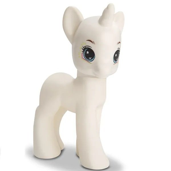 A boneca acompanha um Unicórnio também feito em vinil macio e atóxico, e um kit de canetinhas hidrográficas para que você possa pintar o unicórnio e também o cabelo da boneca da forma que quiser. Após lavar com água, a tinta sai, para que você possa começar a brincadeira novamente!