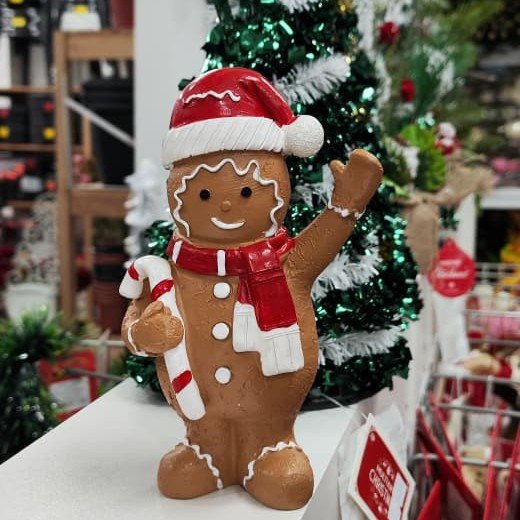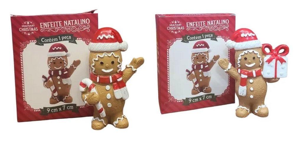 Com acabamento detalhado e cores vibrantes, o boneco remete ao clássico biscoito de gengibre, trazendo um toque lúdico e festivo ao ambiente. Uma peça perfeita para quem ama o espírito natalino e quer criar uma decoração acolhedora e divertida.