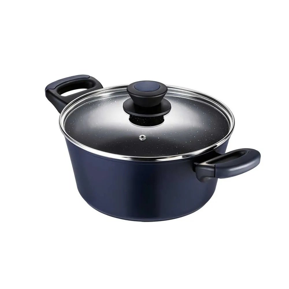 Antiaderente Sim Uso Não utilizar em micro-ondas, Não utilizar em lava-louças, Resistente a fogão com chama direta, Necessário fazer a cura antes do primeiro uso, Compatível com fogão de indução Cor Azul, Preto Material Alumínio Conteúdo da embalagem 1 Caçarola com tampa Tamanho Diâmetro: 28 cm, Altura: 13 cm, Volume: 6,7 L, Espessura: 3 mm Linha/Decoração Everyday Azul Conjunto ou avulso Avulso Certificação de Segurança Certificação compulsória certificada pelo OCP 0127 – Saron Certificações.Registro Inmetro nº 003799/2024 e classificação de antiaderência A (Ótima), conforme Portaria Inmetro 499/2021. Material do cabo Silicone Material da tampa Vidro temperado e silicone