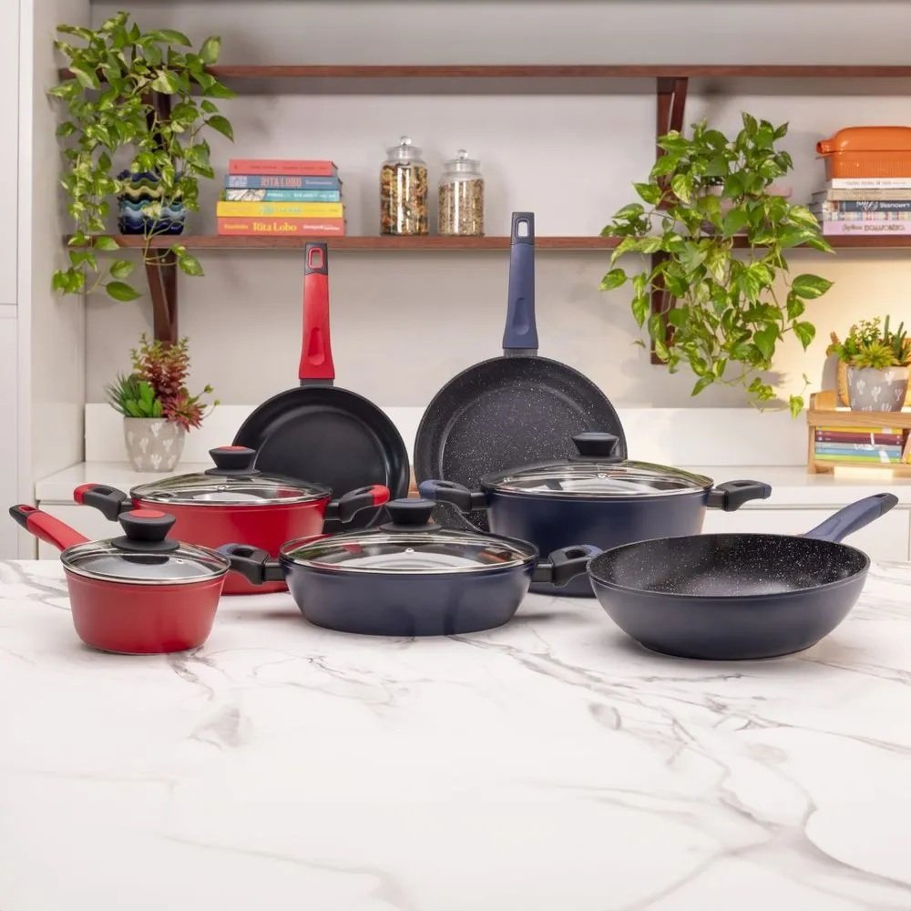 A caçarola é feita de alumínio forjado com 3 mm de espessura e 3,5 mm de espessura no fundo, o que as torna leves e proporciona melhor distribuição de calor. Suas alças possuem revestimento soft touch, oferecendo mais segurança e conforto durante o manuseio. A linha é compatível com todos os tipos de fogão, incluindo indução, o que traz mais segurança e economia à sua rotina.
