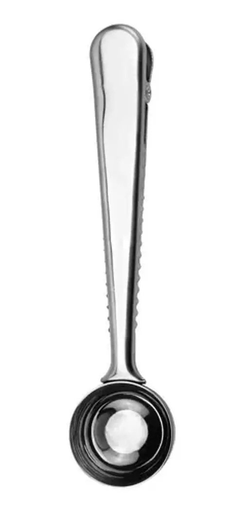 A Colher Prendedora para Café é o acessório ideal para quem busca funcionalidade e organização na cozinha. Fabricada em aço inoxidável de alta qualidade, ela combina duas utilidades em um só item: colher medidora para pó de café (ou outros grãos) e prendedor de pacotes.