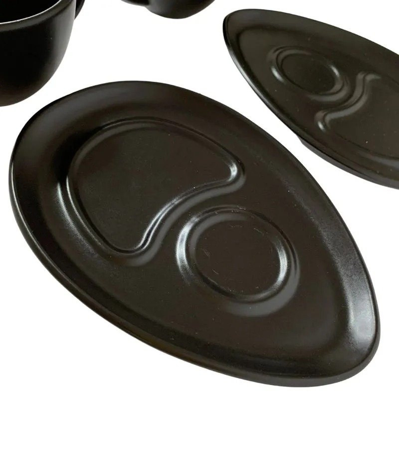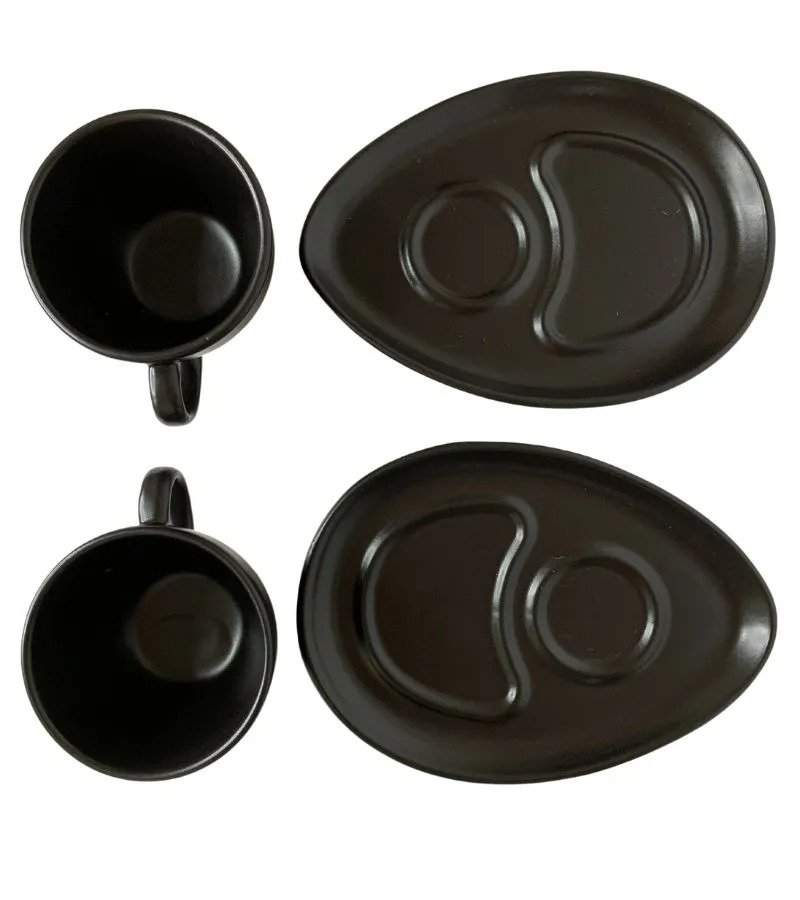 Conjunto 2 Xícaras Com Pires Cerâmica Preto