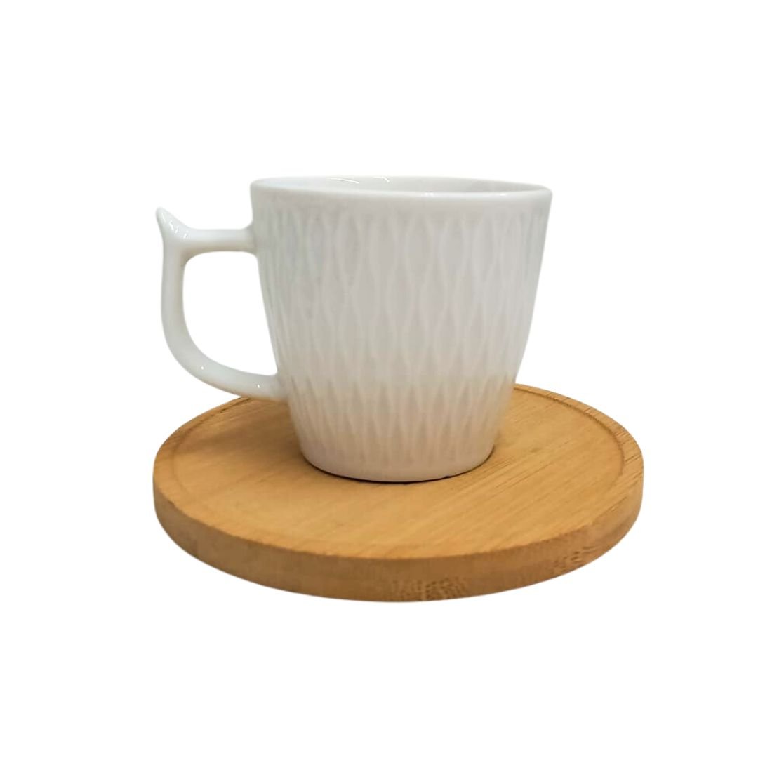 Conjunto 6 Xícaras 90ml Com Pires Cerâmica e Bambu Havana Marti Cor Branco Wellmix
