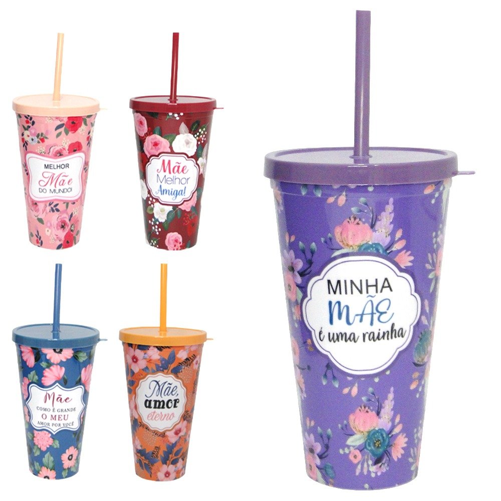 Copo Com Canudo Plástico 600ml Dia Das Mães Sortido