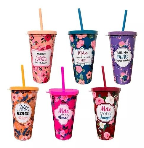 Este copo é perfeito para presentear e celebrar o amor pela mãe! Com capacidade de 600ml, possui uma tampa prática e um canudo de plástico reutilizável para uma experiência de bebida conveniente e sustentável. Além disso, cada copo vem com uma seleção encantadora de frases dedicadas à mãe, tornando-o um presente carinhoso e funcional para qualquer ocasião.