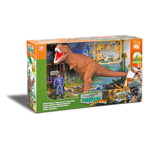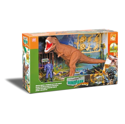 Prepare- se para uma aventura emocionante com DinoPark Hunter\! Este incrível conjunto faz um dinossauro T-Rex feroz, uma corajoso soldador pronto para ação em uma jaula com um dinossauro menor capturado. Acompanha também um conjunto de acessórios para criar histórias repletas de ação e desafios no mundo dos dinossauros.