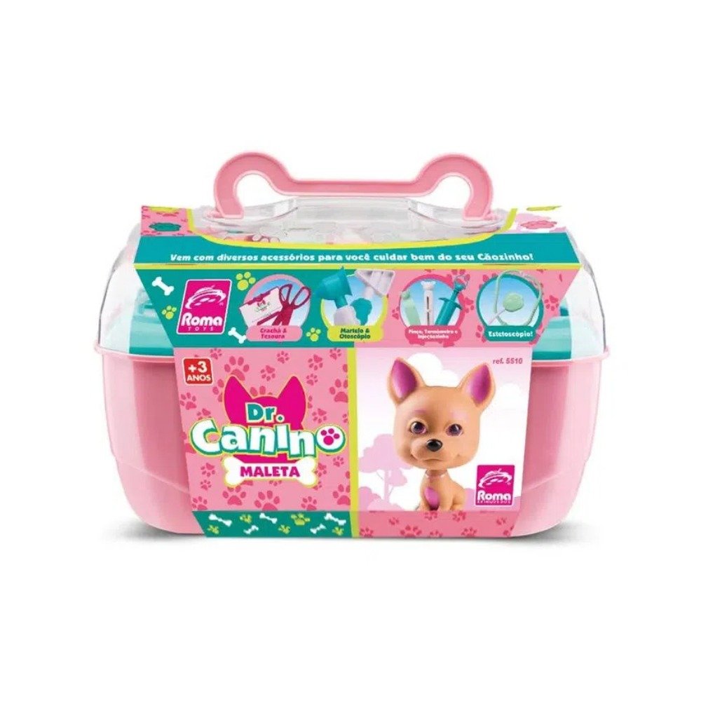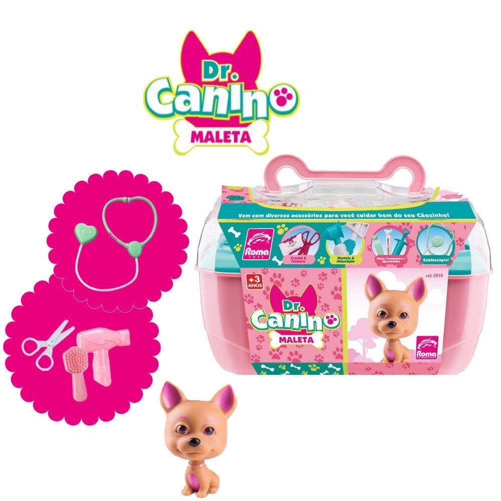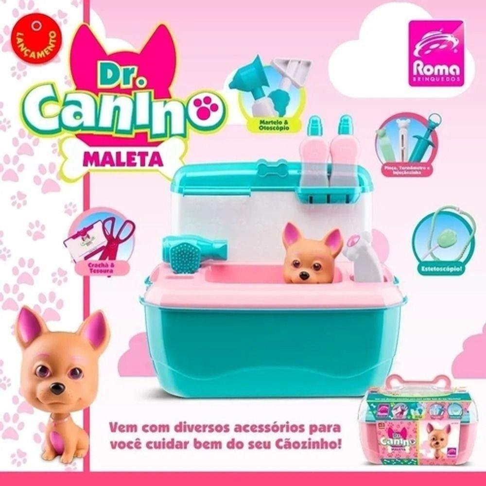 A Maleta Dr. Canino é um Pet Shop e Veterinário portátil para levar a brincadeira onde quiser! Transforma seu filho em uma especialista, pois vem com acessórios para ele cuidar do Pet, e após os cuidados ainda pode cuidar da limpeza, pois a maleta se transforma em um lavatório de pet shop que funciona de verdade para dar banho em seu pet com o chuveirinho. Vem com um cachorrinho e diversos acessórios para você cuidar bem do seu cãozinho. Acessórios super ricos em detalhes, um cãozinho muito fofinho.