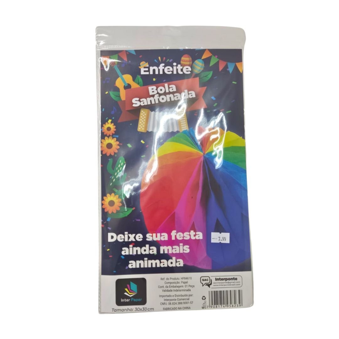 Enfeite Bola Sanfonada Colorida De Papel Para Festa 29x15cm