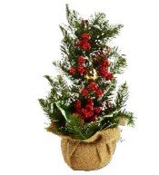 Com um design natural e festivo, a pequena árvore é decorada com pinhas, frutinhos vermelhos e folhagens verdes, representando a beleza e a tradição das festas natalinas. É o toque perfeito para quem deseja uma decoração charmosa e sofisticada sem abrir mão da praticidade.