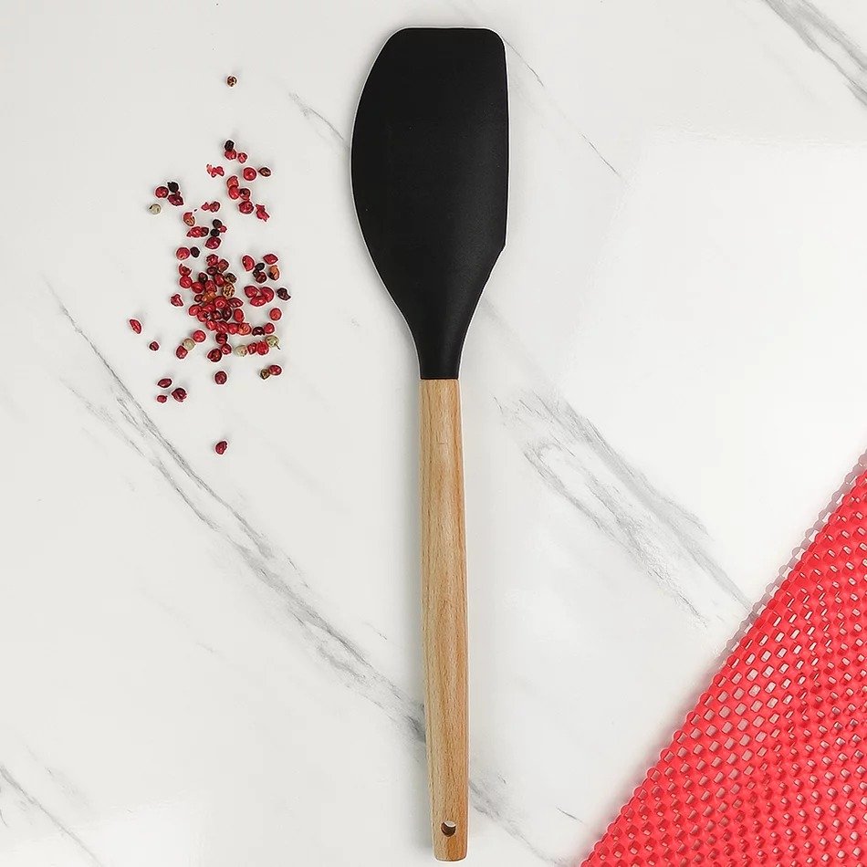 Espátula Culinária Silicone Cabo De Madeira Preto