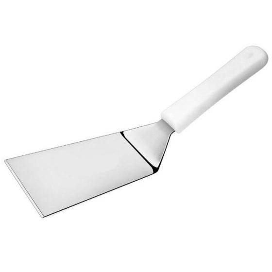 Espatula para lanche curva, o jeito mais prático de preparar lanches, virar massas e fritar ovos. Com seu formato curvo fica mais seguro o preparo da refeição, sua mão ficará mais protegida, contra riscos de queimaduras. É ideal para cortar e pegar alimentos com facilidade e higiene. É produzida com inox de alta qualidade, cabo em polipropileno branco, oferecendo maior durabilidade e resistência. Seu design clássico é apropriado para servir diversos pratos em qualquer ocasião.