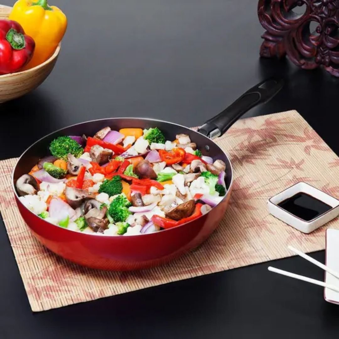 A panela Wok 4,1L Brinox com 28cm de diâmetro tem estrutura em alumínio, proporciona rapidez no cozimento com menos energia.