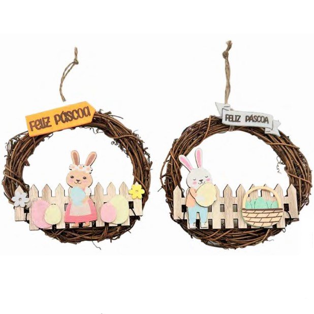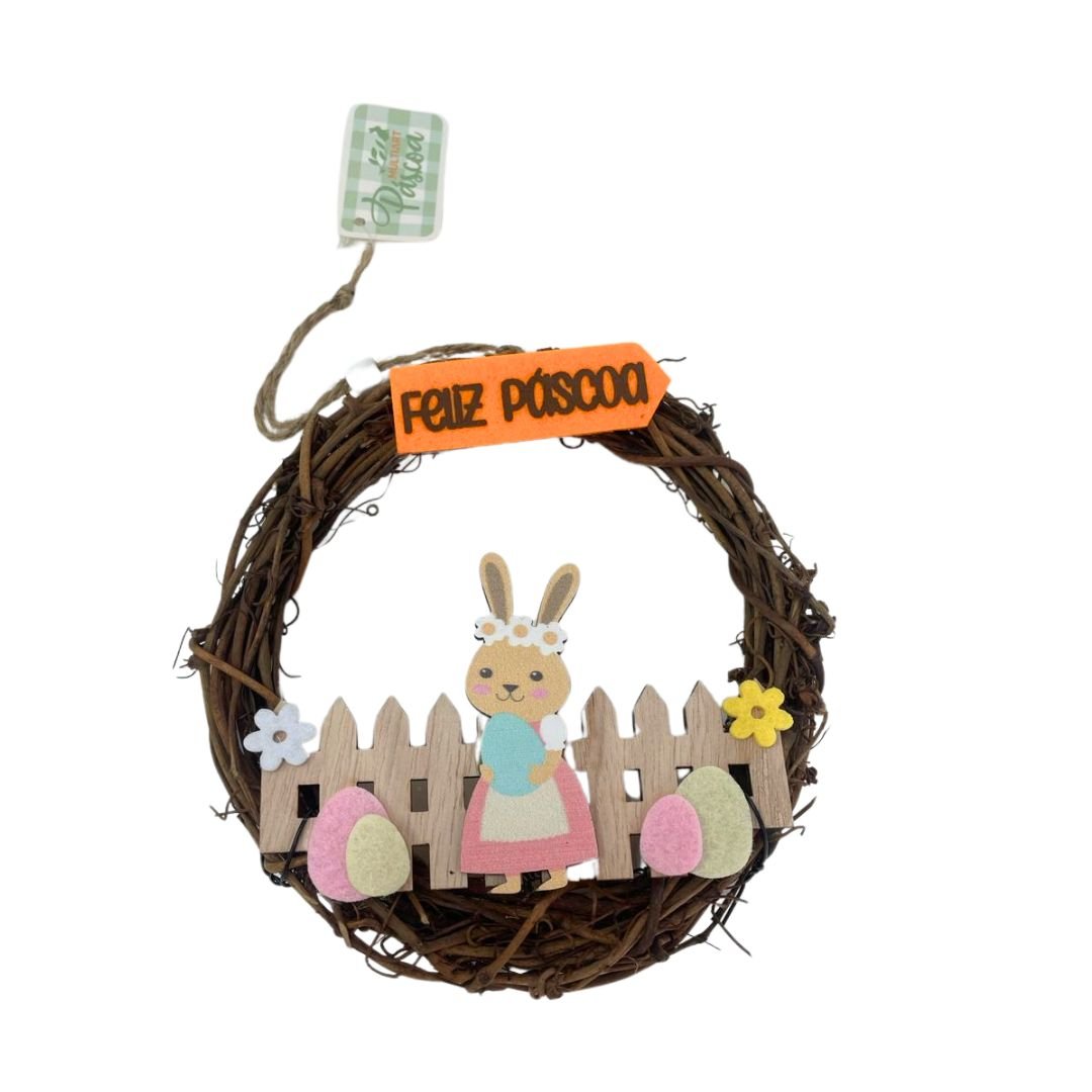Guirlanda Páscoa Vila Dos Coelhos 15cm Avulso Madeira Sortido