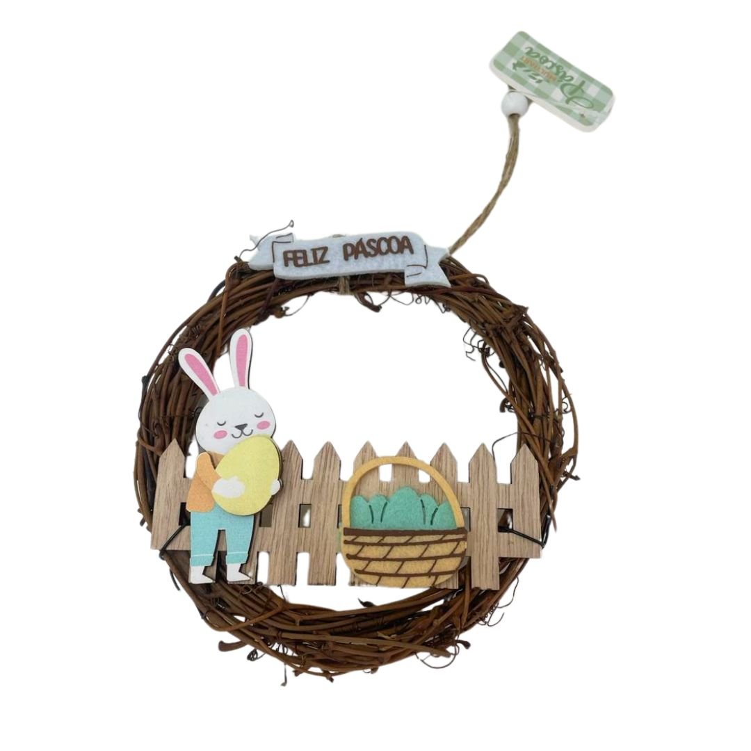 Celebre a temporada de Páscoa com a nossa encantadora guirlanda decorativa de 15cm em madeira! Esta peça é perfeita para adicionar um toque de alegria e charme à sua decoração. Feita com materiais de alta qualidade, cada detalhe é trabalhado para garantir durabilidade e beleza. Seja para receber convidados ou simplesmente para alegrar o seu espaço, esta guirlanda é a escolha ideal para iluminar o seu lar nesta época tão especial.