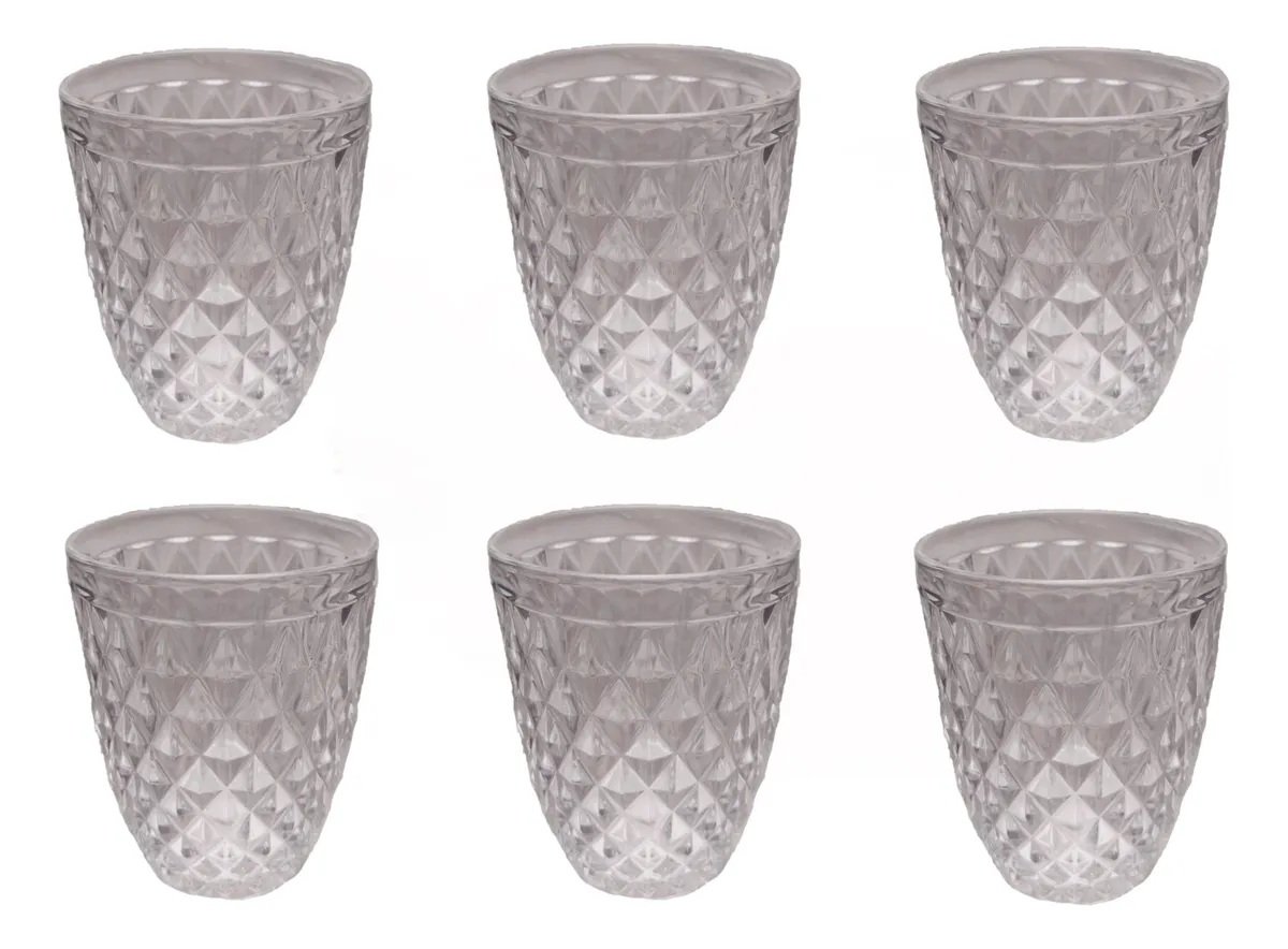 Jogo com 6 Copos de Vidro Bico de Abacaxi Transparente 270 ml – Estilo Clássico com Toque de Sofisticação