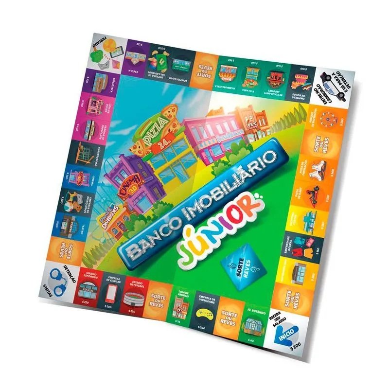 A versão júnior do Banco Imobiliário conta com uma mecânica e valores simplificados, além de imóveis que trazem temas mais amigáveis às crianças, como sorveteria, loja de doces e muito outros. As crianças vão comprar e vender propriedades, construir casas e aprender a controlar seu dinheiro.