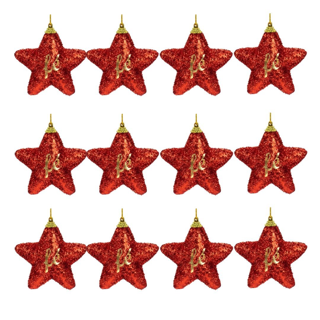Kit 12 Enfeites Natalinos Estrela Palavras 12cm