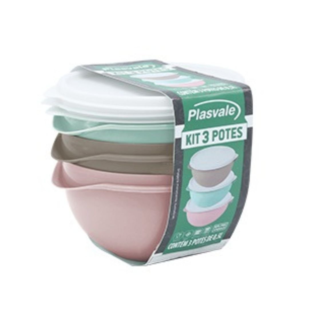 Kit 3 Potes Redondos 0,5L Plasvale Sortido