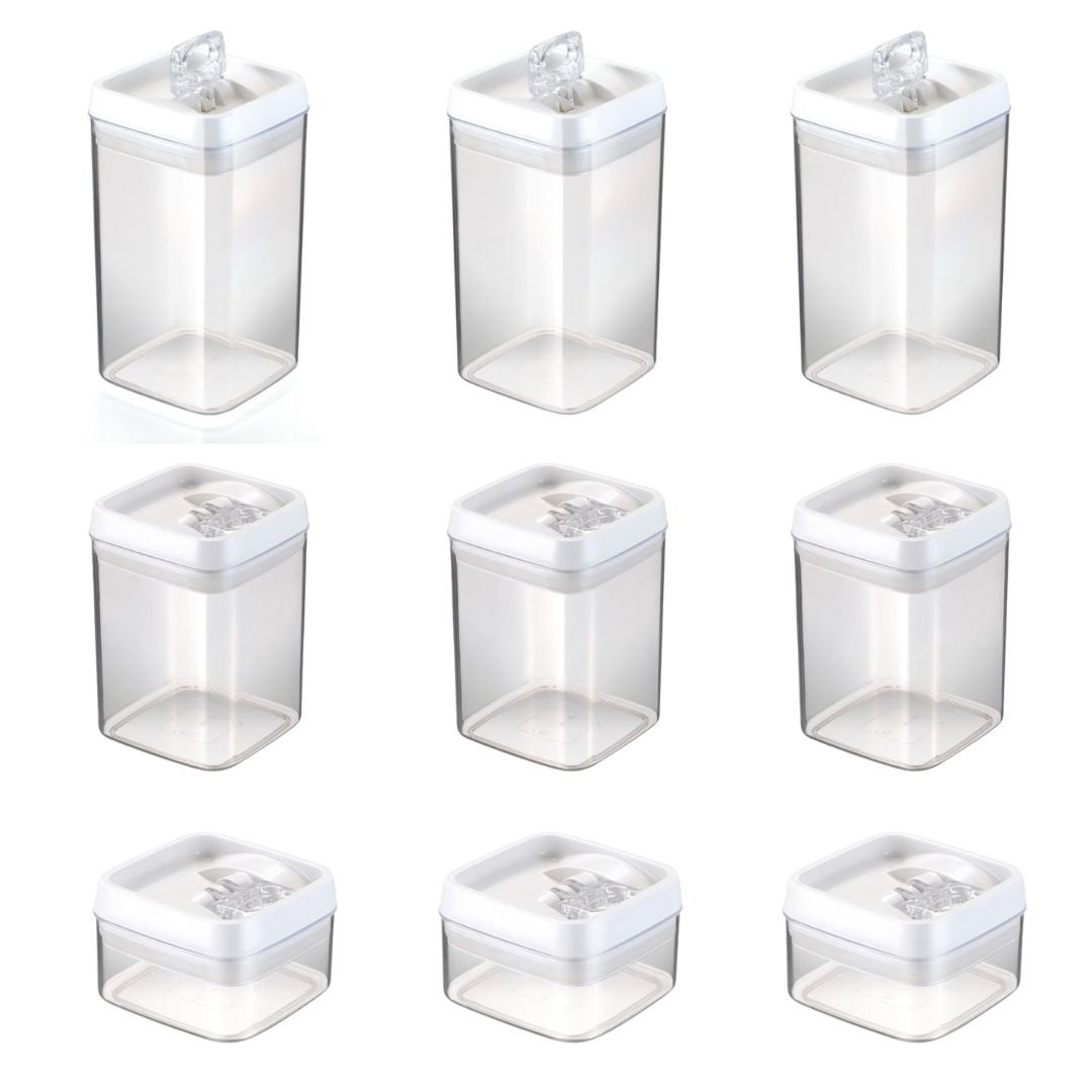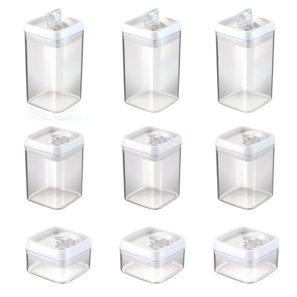 Kit 9 Potes Herméticos Crystal Quadrado