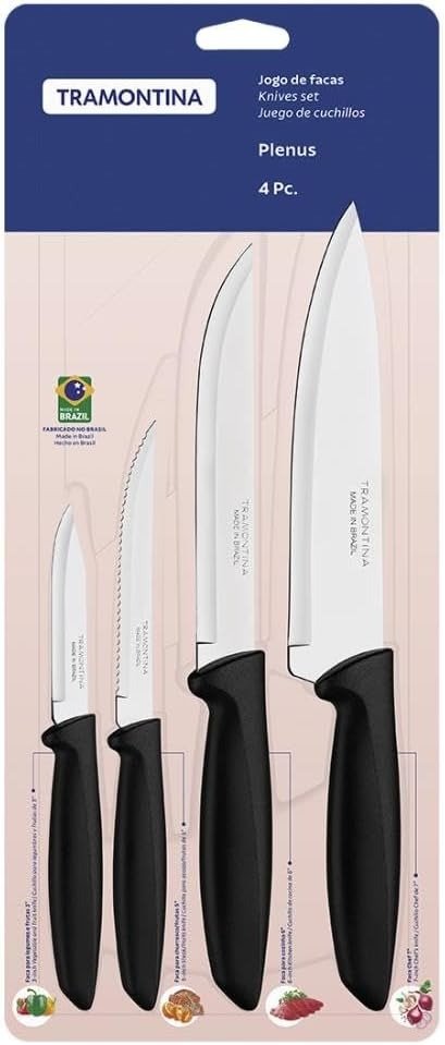 Kit Facas 4 Peças Inox Plenus Preto Tramontina