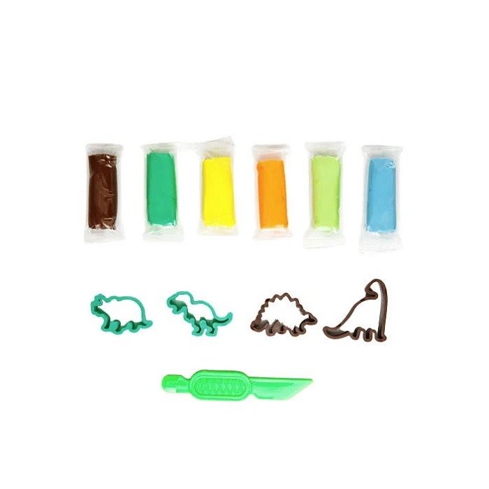 Kit Massa De Modelar 6 Cores 5 Moldes Dino