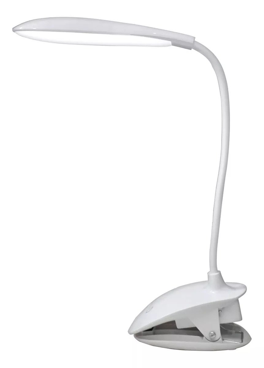 Luminária recarregável com garra, ótima para leitura, com haste flexível e três níveis de iluminação. Garra bem firme e rígida, podendo pregá-la em qualquer lugar com muita firmeza. Contém luzes led de alta intensidade, proporcionando uma ótima iluminação.