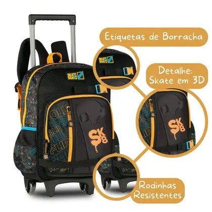 A Mochila de Rodinhas Infantil Masculina Skate é a escolha ideal para meninos cheios de energia que querem unir praticidade, resistência e estilo no dia a dia escolar.