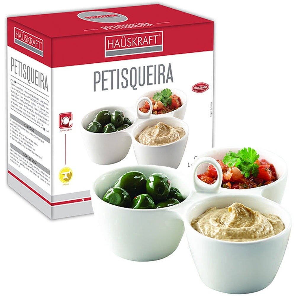 Petisqueira Porcelana 3 Divisórias Branca Hauskraft
