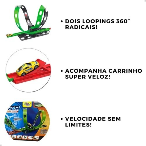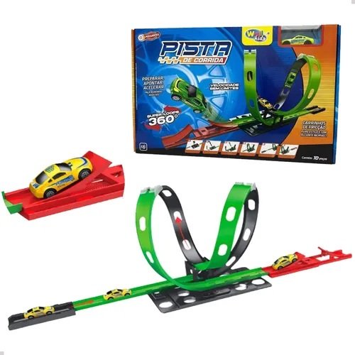 Descubra a emoção sem limites com a Pista Suprema de Corrida! Projetada para desafiar a gravidade com não apenas um, mas dois loopings de 360 graus, essa pista inovadora proporciona uma experiência única que fará seu coração disparar. Sinta a adrenalina enquanto seu carrinho de alta performance é lançado em movimentos impressionantes, transformando cada curva em uma nova aventura. Venha voar pelos loopings e viver a verdadeira essência da velocidade!