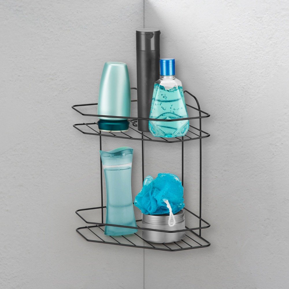 A prateleita/cantoneira dupla de aço acabamento black é perfeita para organizar produtos para o banho dentro do box. Por ser dupla, abriga uma maior quantidade de produtos, otimizando espaço.