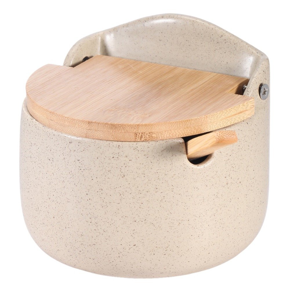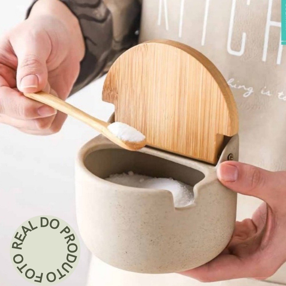 Saleiro Cerâmica Tampa De Bambu Grano 11x9,7cm Bege