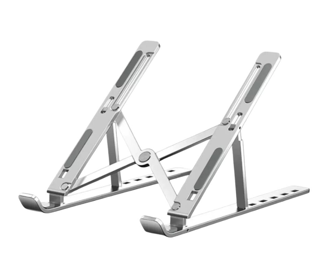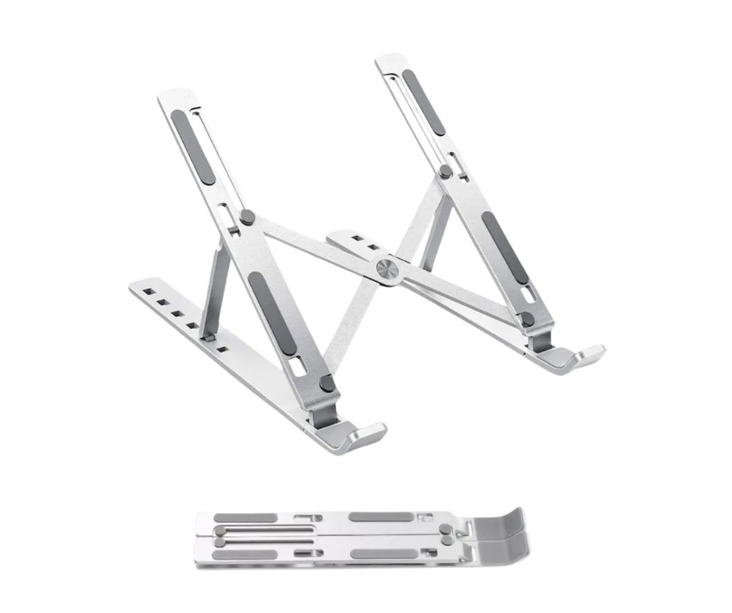 Suporte para Notebook em Alumínio – Articulado, Dobrável e Ergonômico | Prateado
