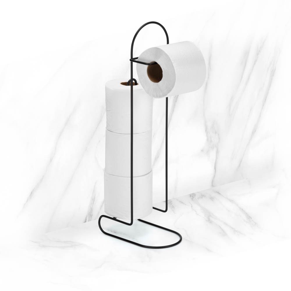 O Suporte para Papel Higiênico de chão aço preto da Arthi possui capacidade para 4 rolos e fabricado em material resistente e altamente durável. É funcional e portátil, pois pode ser transportado com facilidade.