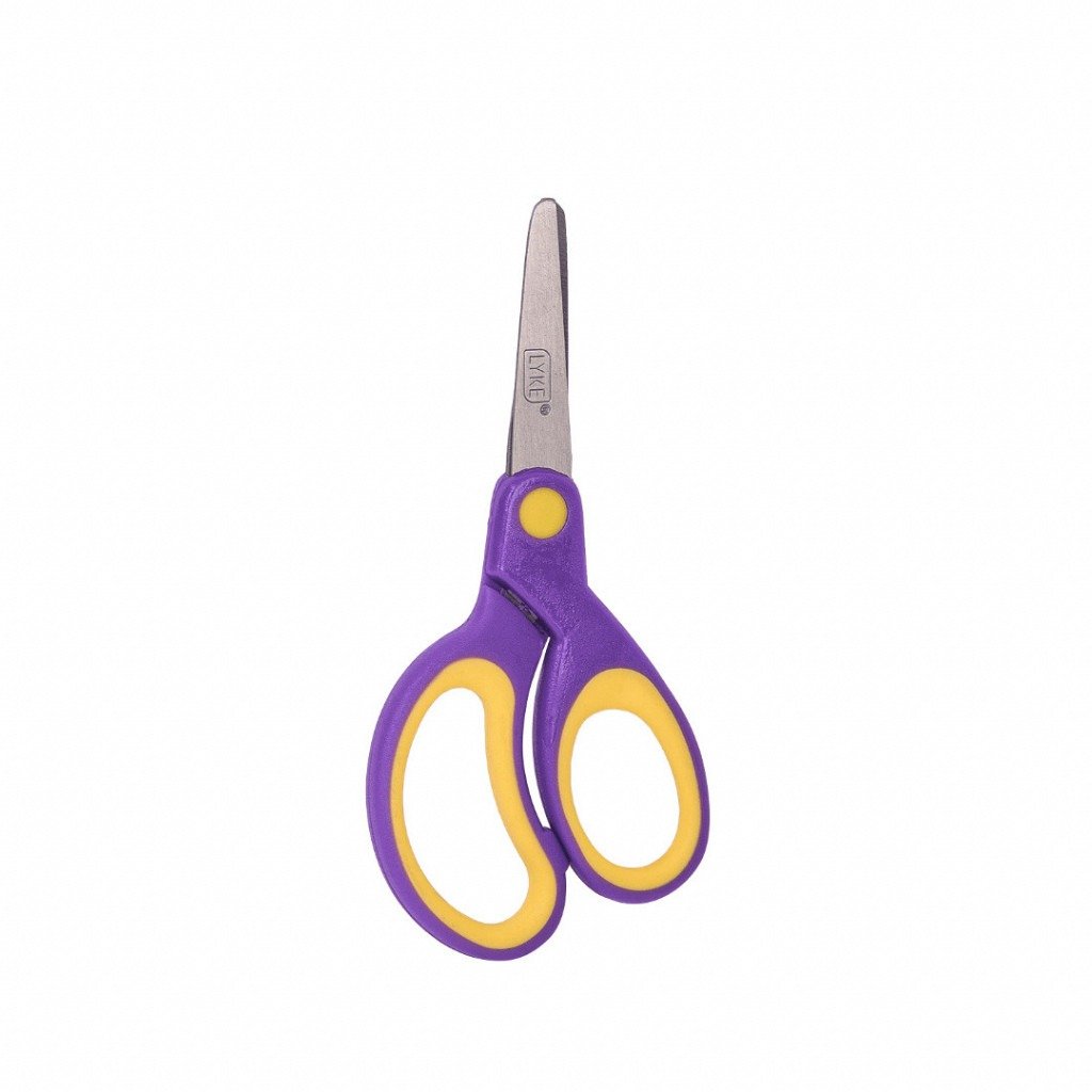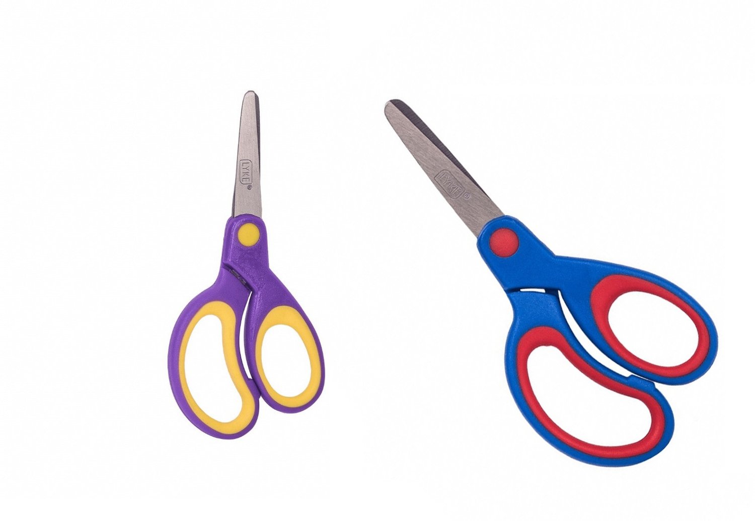 A Tesoura Escolar Lyke com cabo emborrachado possui formato anatômico, design moderno e a ponta arredondada, garantindo segurança para as crianças.
