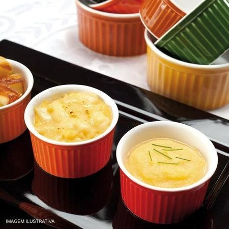 Muito utilizado na culinária ao redor do mundo, o ramequin é uma pequena tigela de porcelana refratária em formato circular e com a parte de fora estriada. É muito usado para servir suflês e o famoso Crème Brûlée, mas pode ser empregado em diversas outras receitas, conforme a sua imaginação pedir.