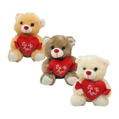 Urso Pelúcia 20cm Coração Cores Sortidas